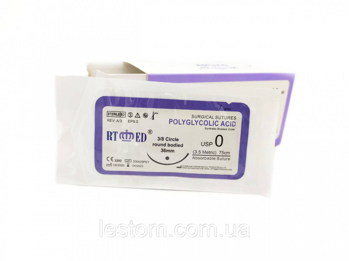 ПГА RT-med USP 0 (EP 3,5) з кол. голкою 36мм 3/8 кола