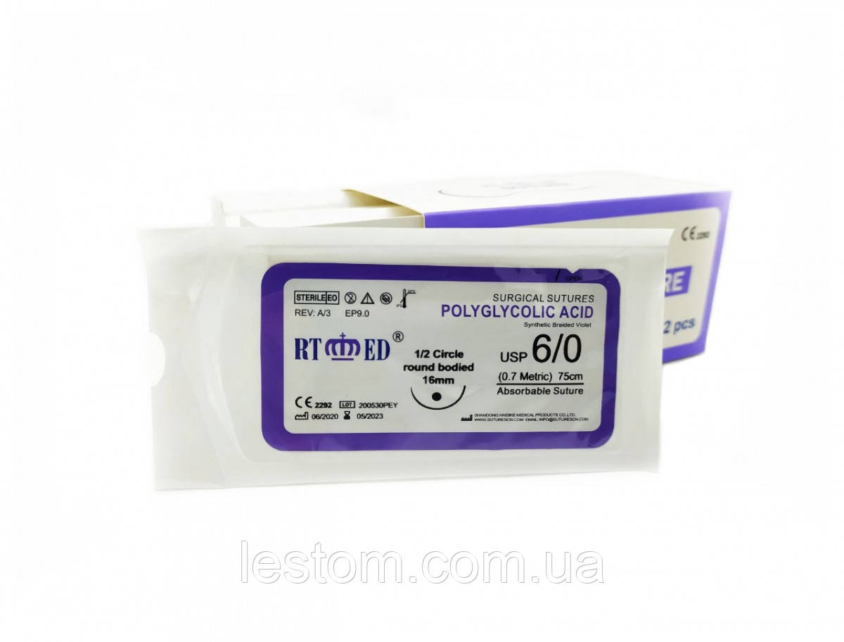 ПГА RT-med USP 6/0 (EP 0,7) з кол. голкою 16мм 1/2 кола