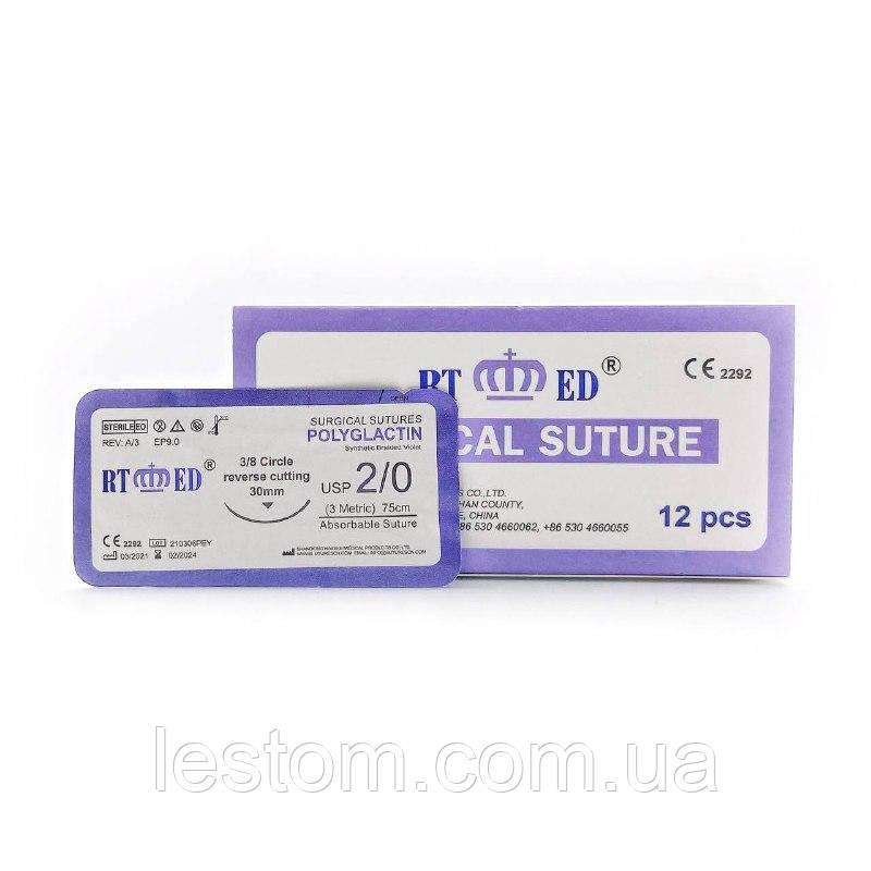 ПГЛА RT-med USP 2/0 (EP 3) зі звор. ріж. голкою 30мм 3/8 кола